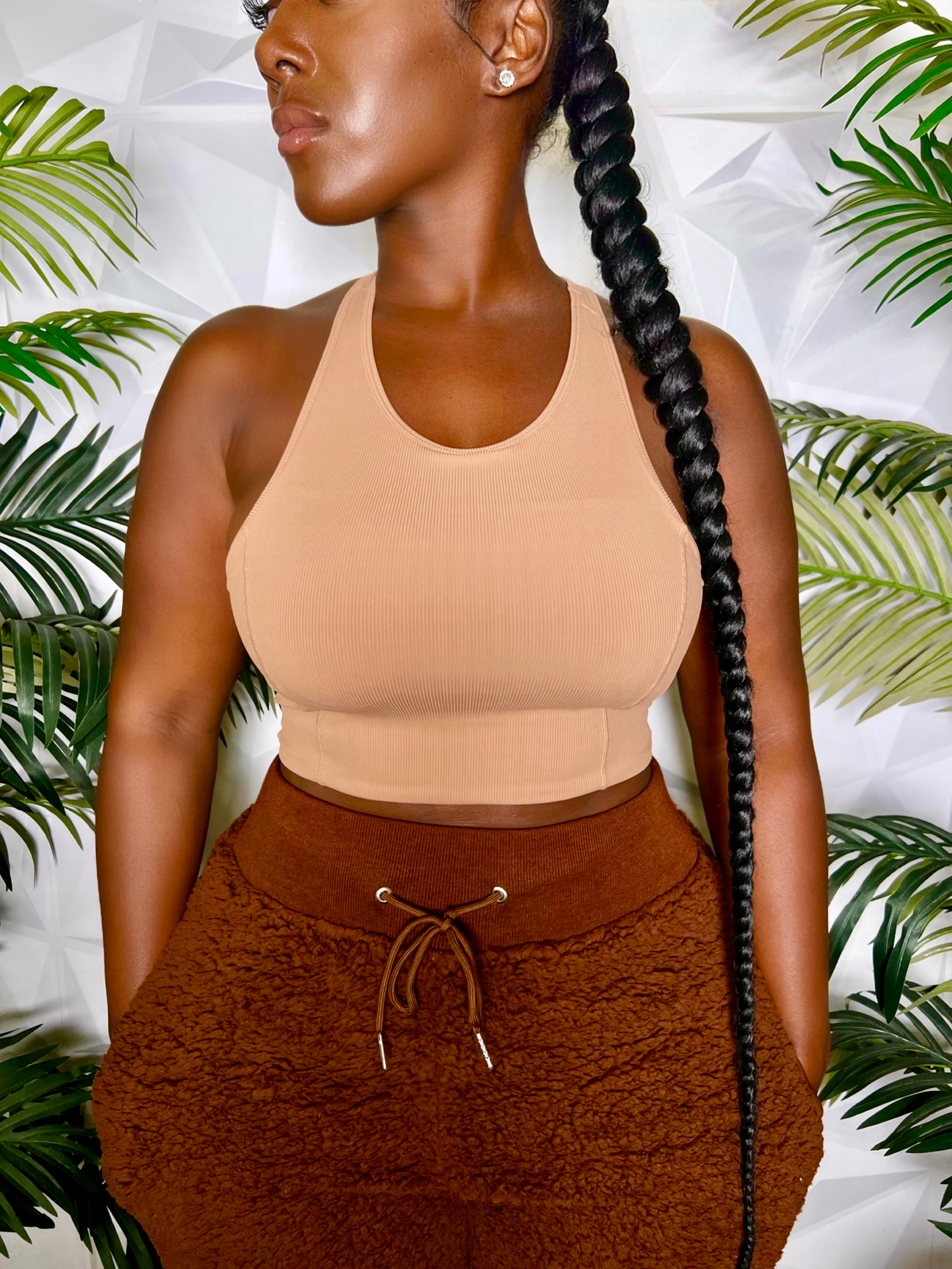 RIBBED TAN TANK TOP - LIGHT BROWN